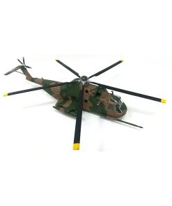 For its Mission the HH-3E is both armor-plated and armed for protection from hostile forces while in the combat area. Rapid loading and unloading of the copter is provided by a rear ramp and cargo door. A water-tight boat hull and large sponsons on either side provide amphibious capability. A newly-designed hoist to penetrate the heavy forest and jungle areas has also been added to the HH-3E. Due to its effective use in the Vietnam conflict, this Chopper has won the respect of all military services and has been nicknamed by the fighting men in Vietnam the “Jolly Green Giant”.