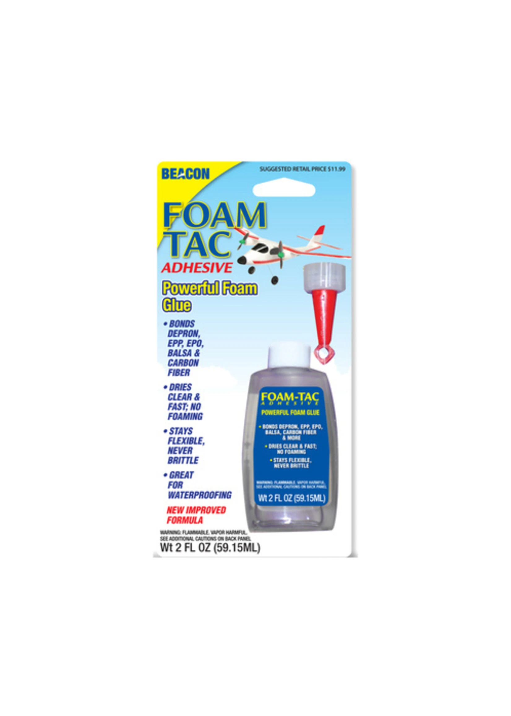 FOAM-TAC is perfect for all types of foam including EPP, EPO, DEPRON, ETC. It also works great on balsa wood, carbon fiber and 3D printed parts.
