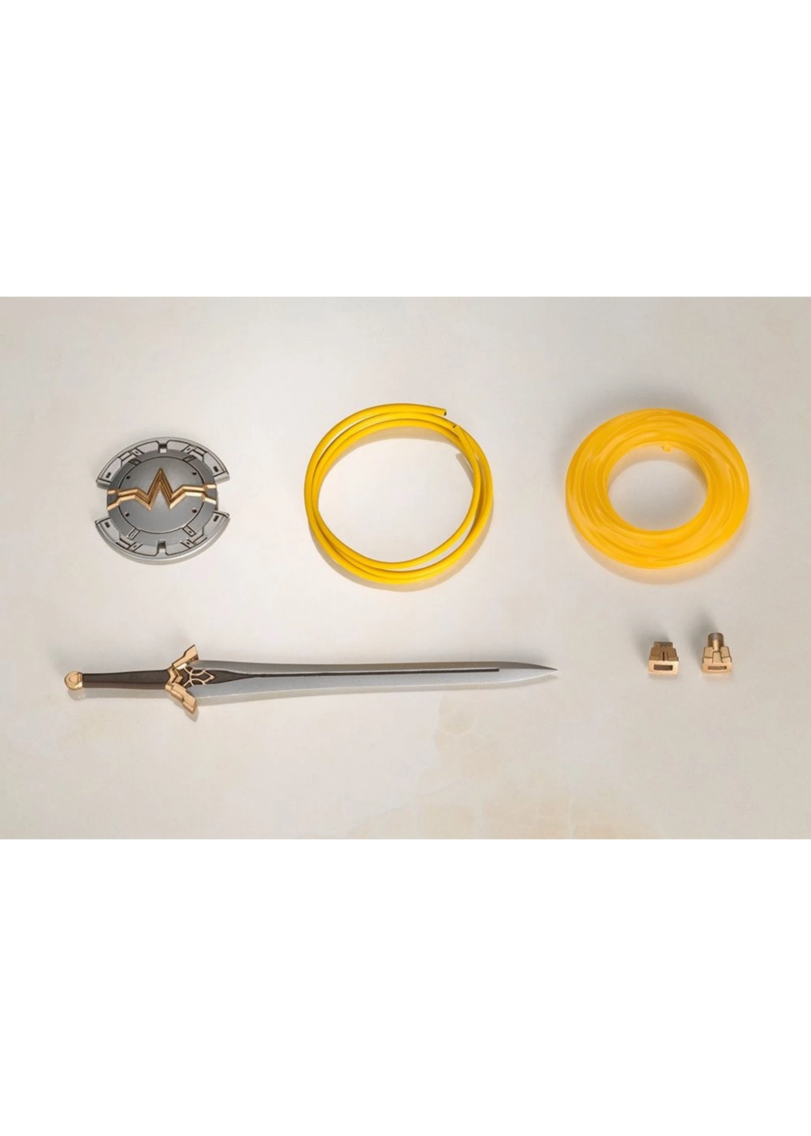 Three face parts are included (normal front-facing, normal left-facing, and yelling). Sword, shield, the Lasso of Truth, various armor parts, shield effect parts, and a simple base are included in this kit. Each joint has a wide range of flexibility to allow for diverse posing such as crossing the arms like in the comics.