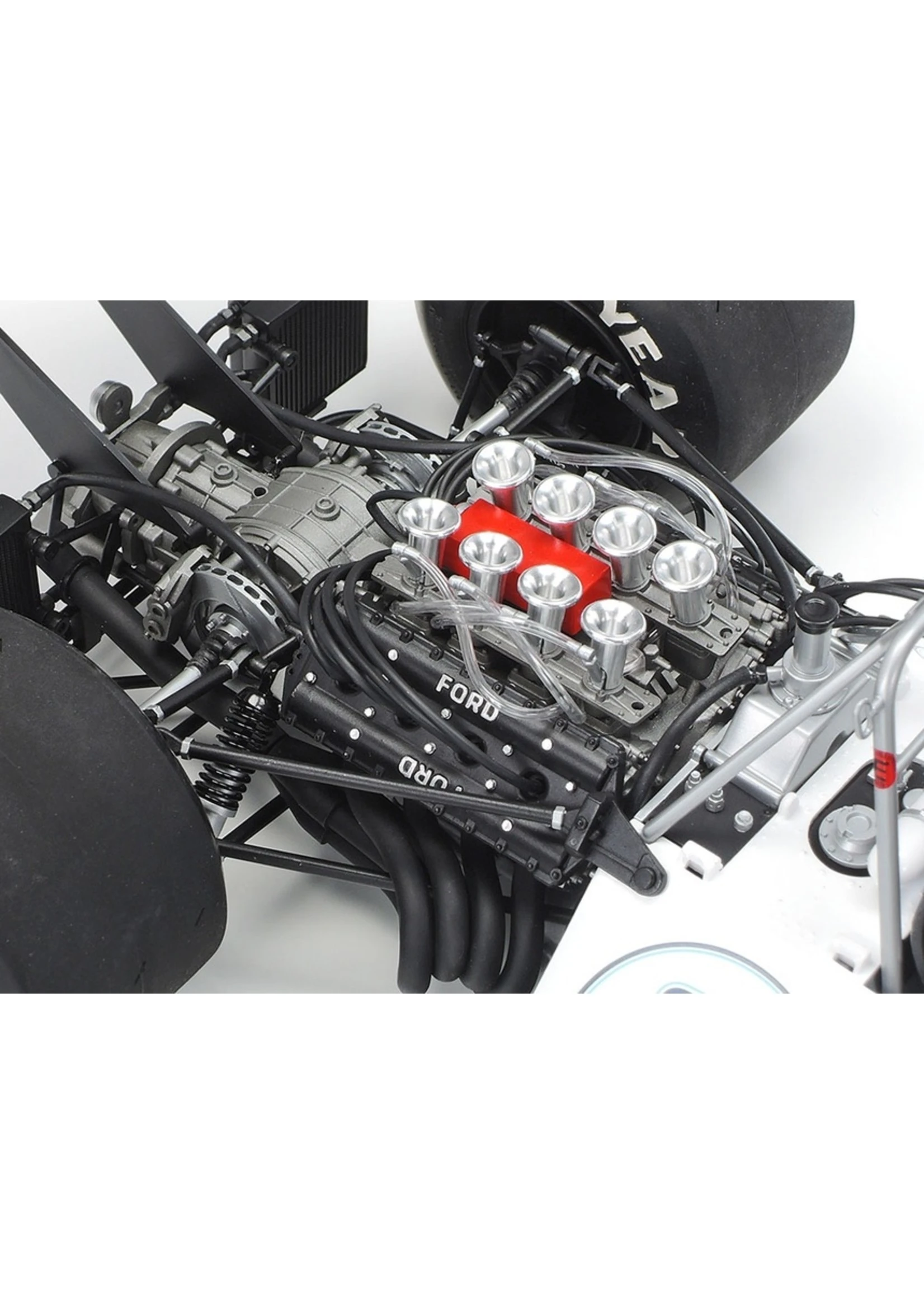 - Highly-detailed V8 engine includes accurately recreated fuel pipes and ignition cables.