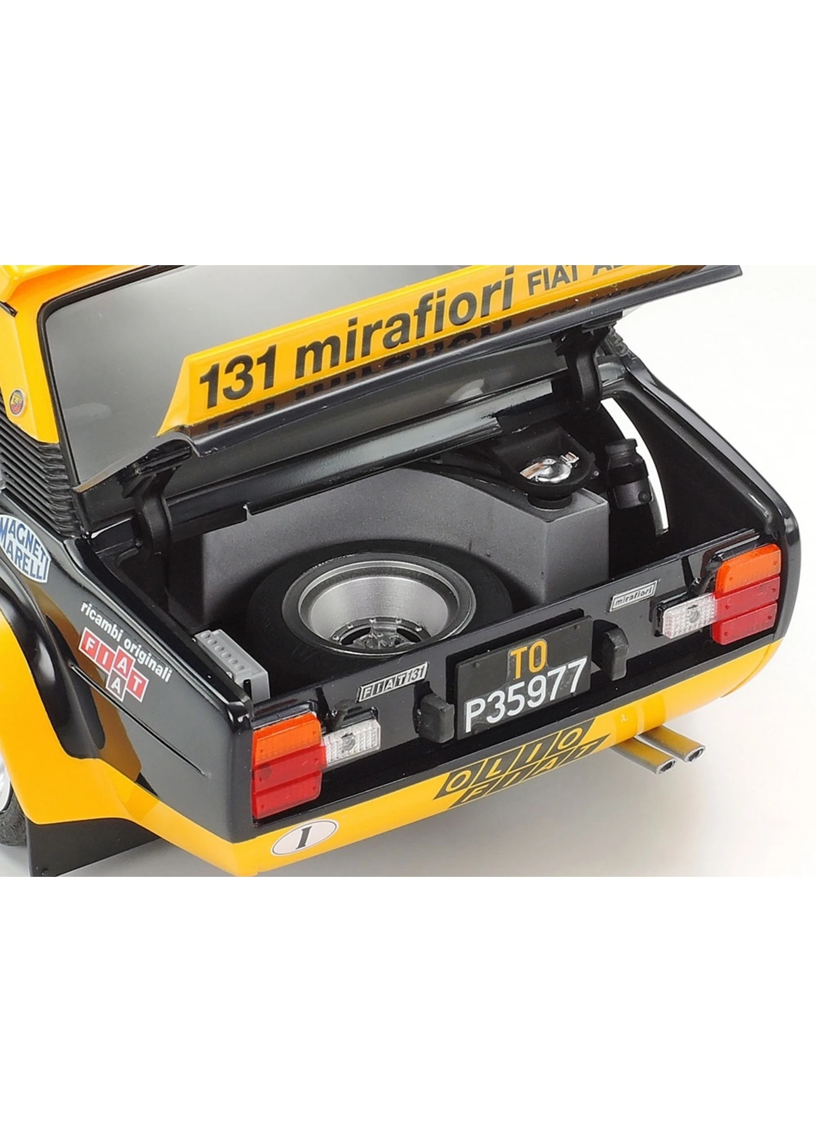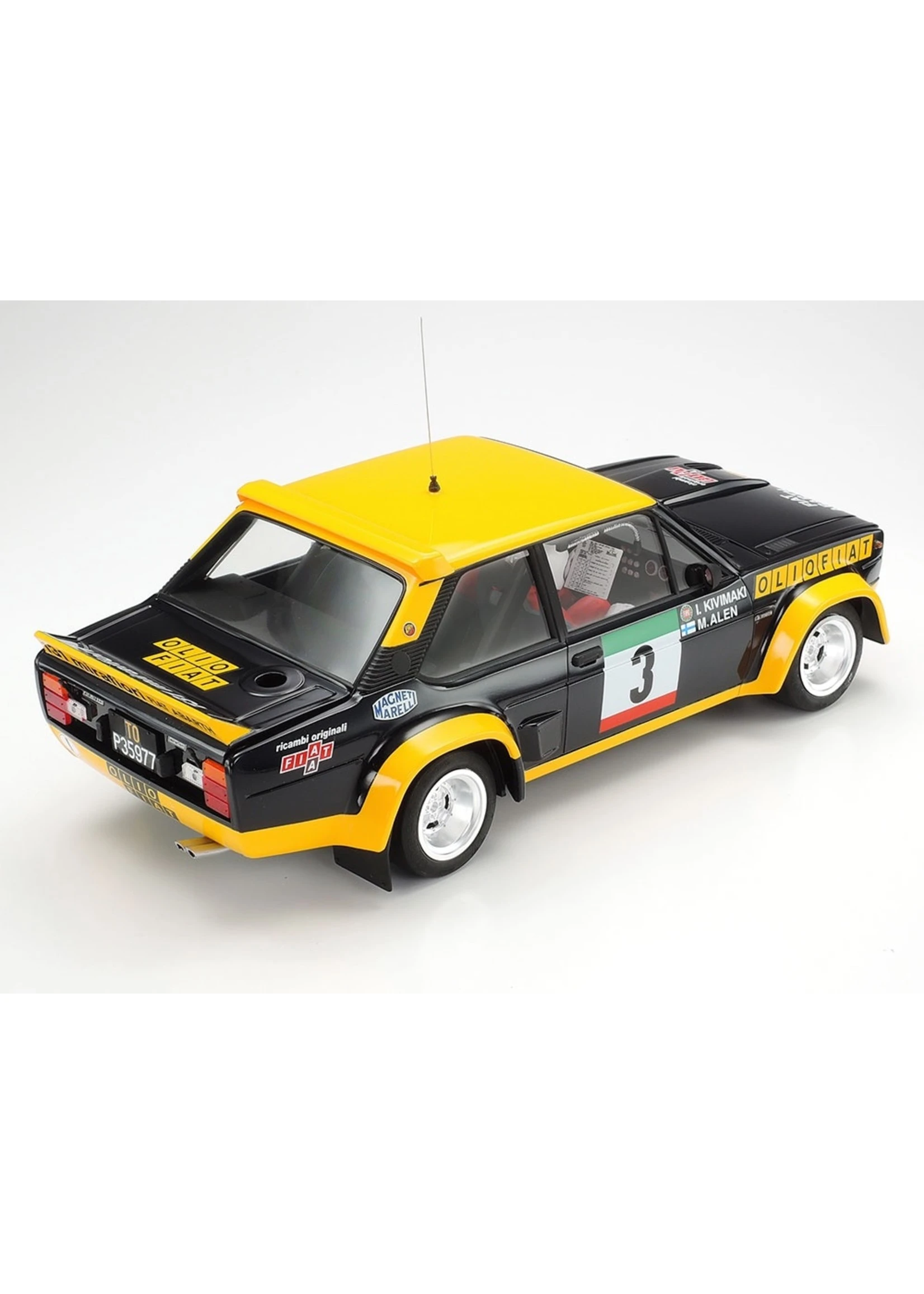 This model kit recreates the Olio Fiat navy blue and yellow liveried 131 Abarth, which was the WRC rally champion in 1977. The real car was an Abarth-tuned version of the Fiat 131 Mirafiori with a 215hp 2-liter engine; it was extremely lightweight thanks to extensive use of FRP and aluminum across its body. It made a rally debut in 1976 and took titles in ’77, ’78 and ’80. This 2020 edition kit is the first re-issue for the venerable Tamiya kit in 21 years, and the first time with this new livery!