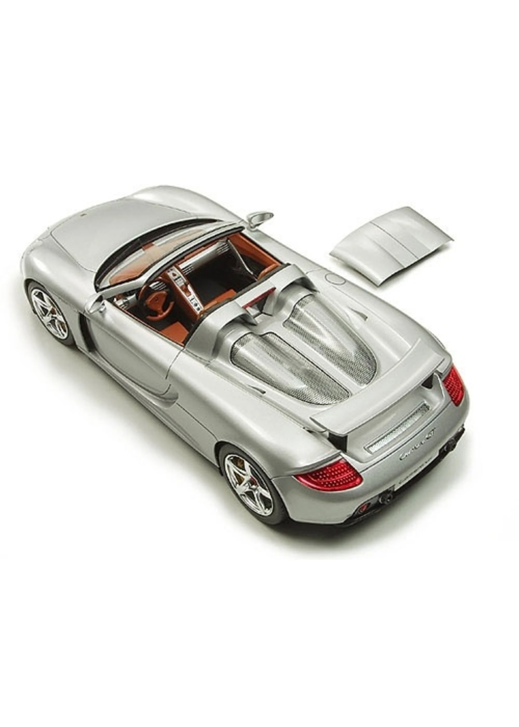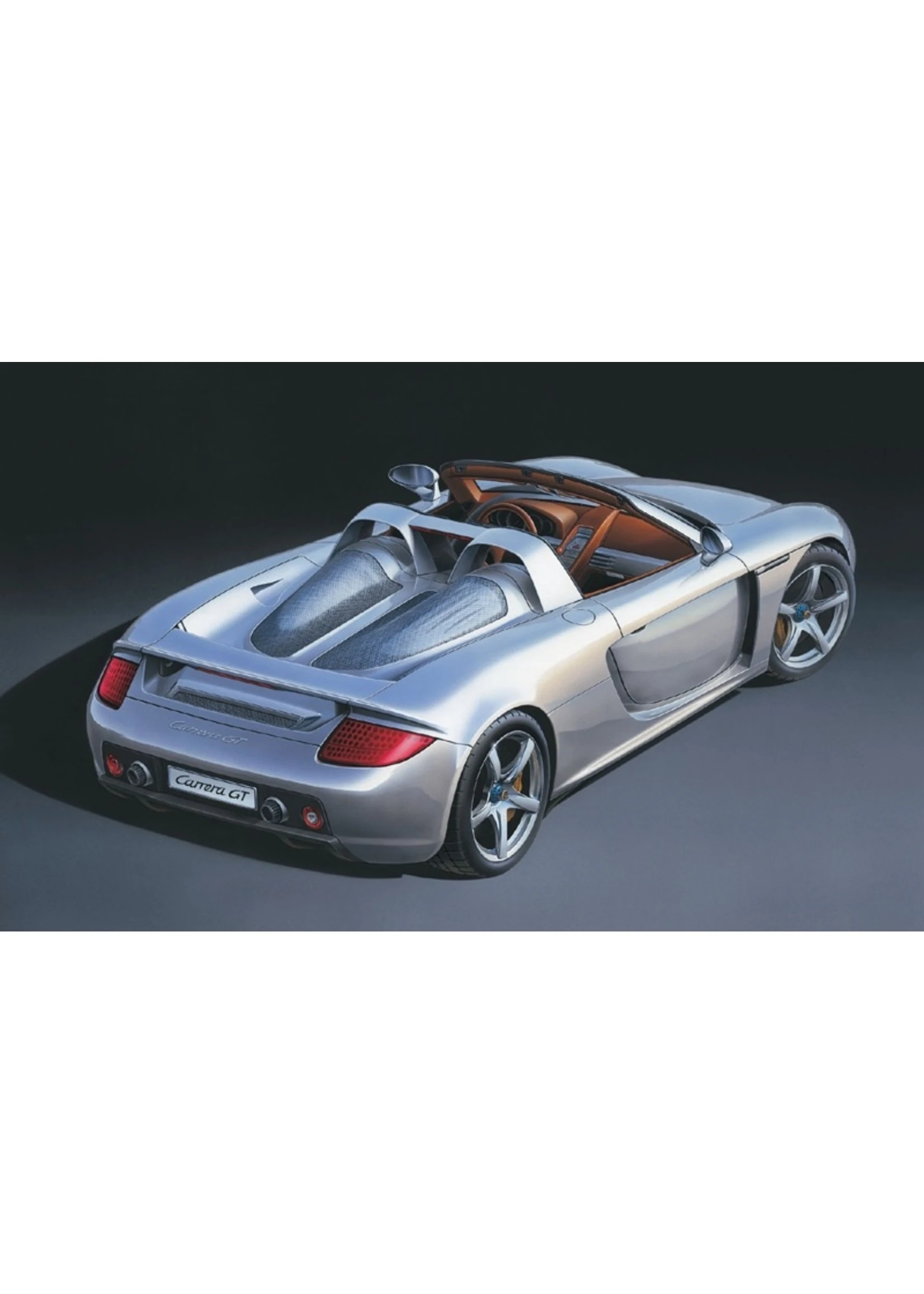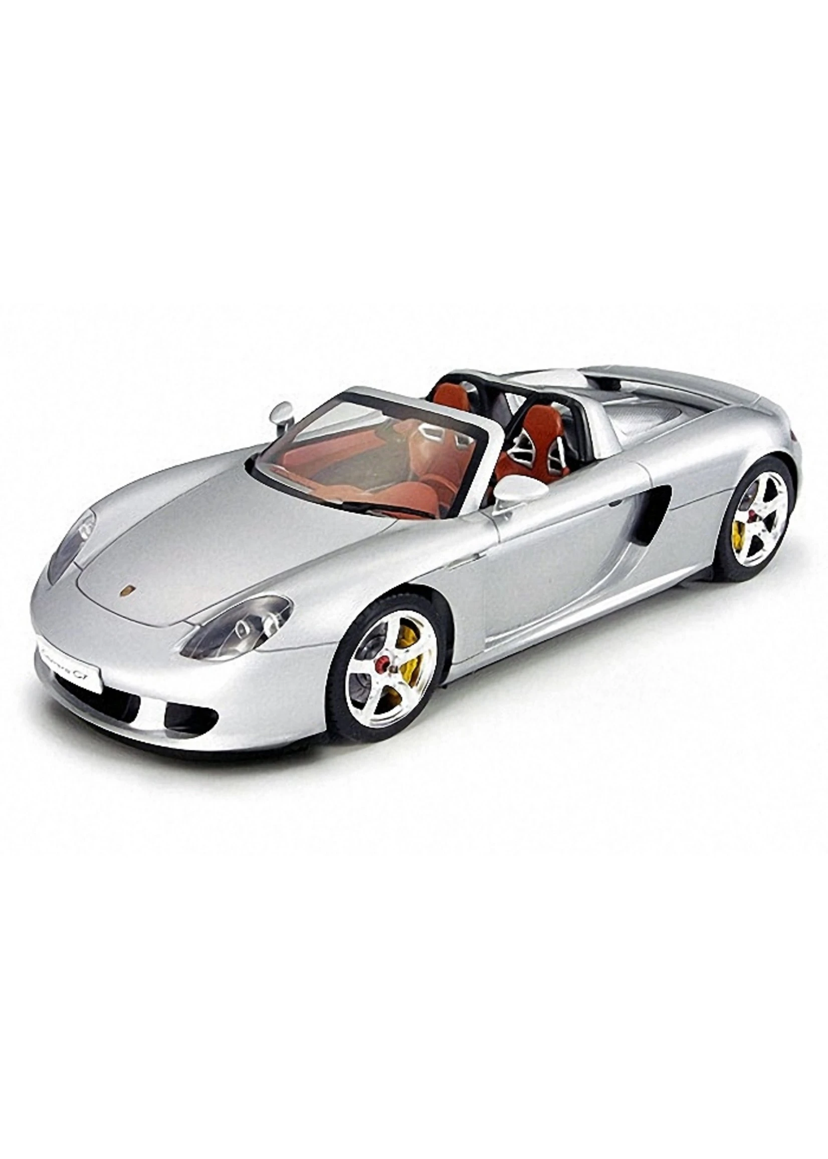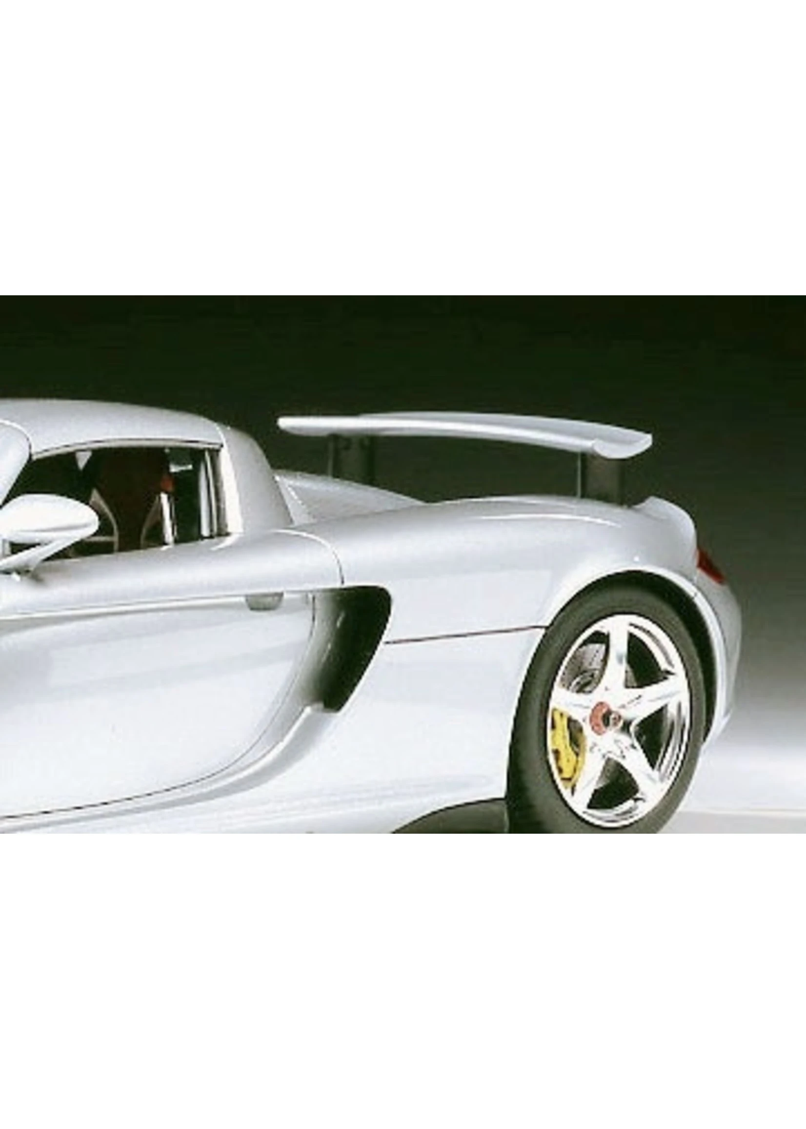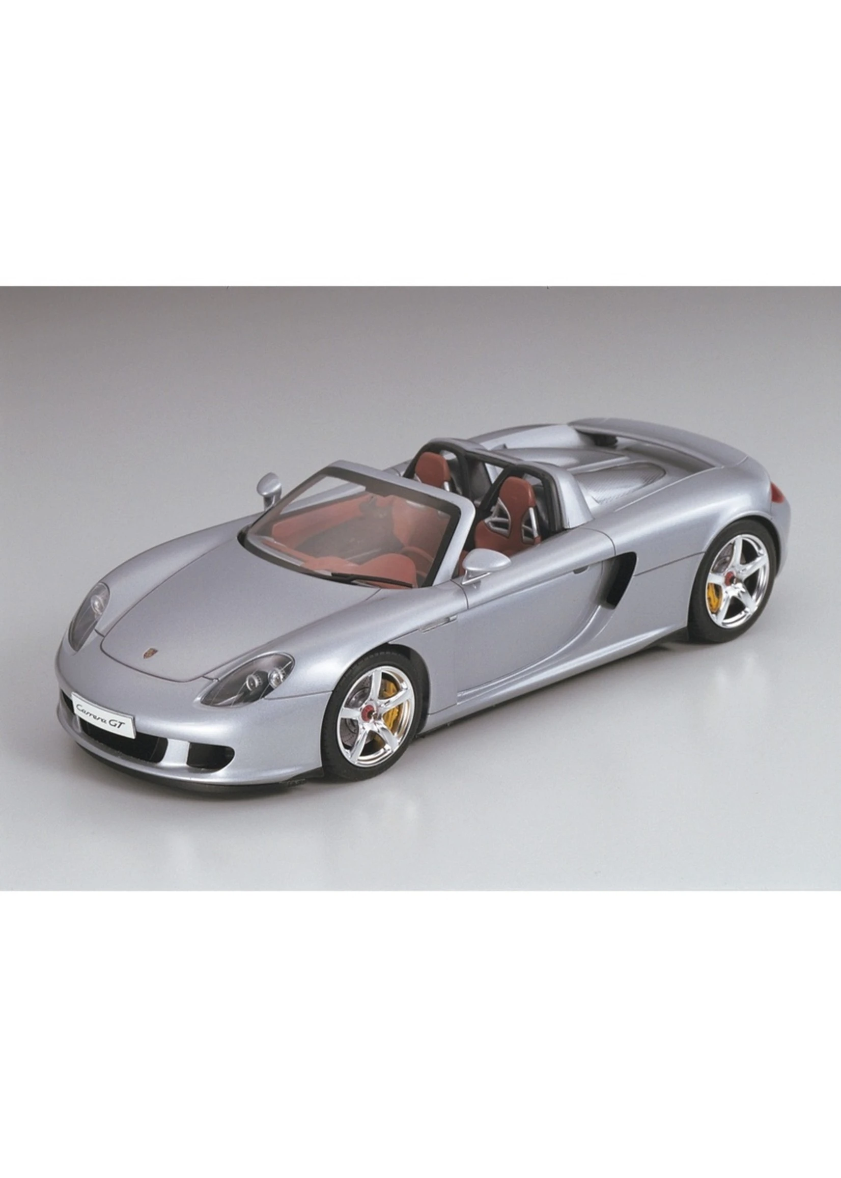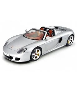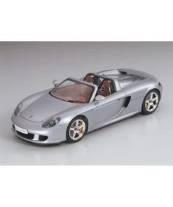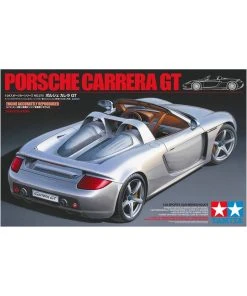 This Tamiya assembly kit recreates the Porsche Carrera GT in 1/24 scale. The Porsche Carrera GT first grabbed grabbed the world’s attention when first unveiled as a concept car at the 2000 Paris Auto Show. Promoted as Porsche’s next generation flagship super sports car, the Carrera GT was officially unleashed onto the international motoring market in 2003. Incorporating the latest and most extreme racing technology, the Carrera GT lines up against the impressive range of super sports cars offered by the worlds top makers, such as the Enzo Ferrari and the Mercedes-Benz SLR McLaren. Featuring a powerful 5.7 liter V10 engine, carbon-fiber monocoque chassis and push-rod suspension all wrapped up in classic Porsche style and elegance, the Carrera GT is the ultimate high-end sports car.