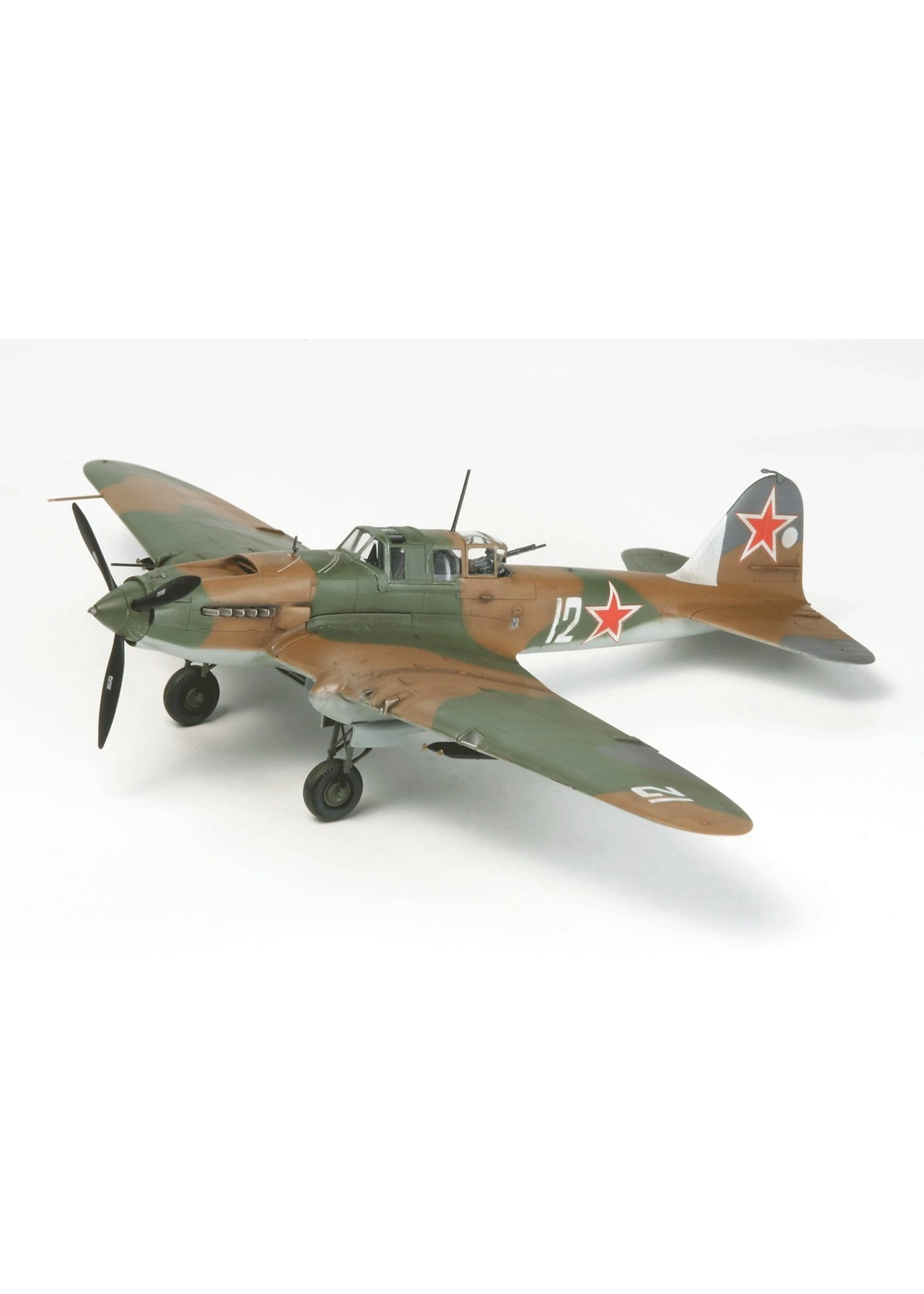 The Tamiya 1/72 aircraft model faithfully captures all the details of this historic aircraft. The Il2 is also available in 1/48 scale for those modelers who have extra display space in their war bird collection.
